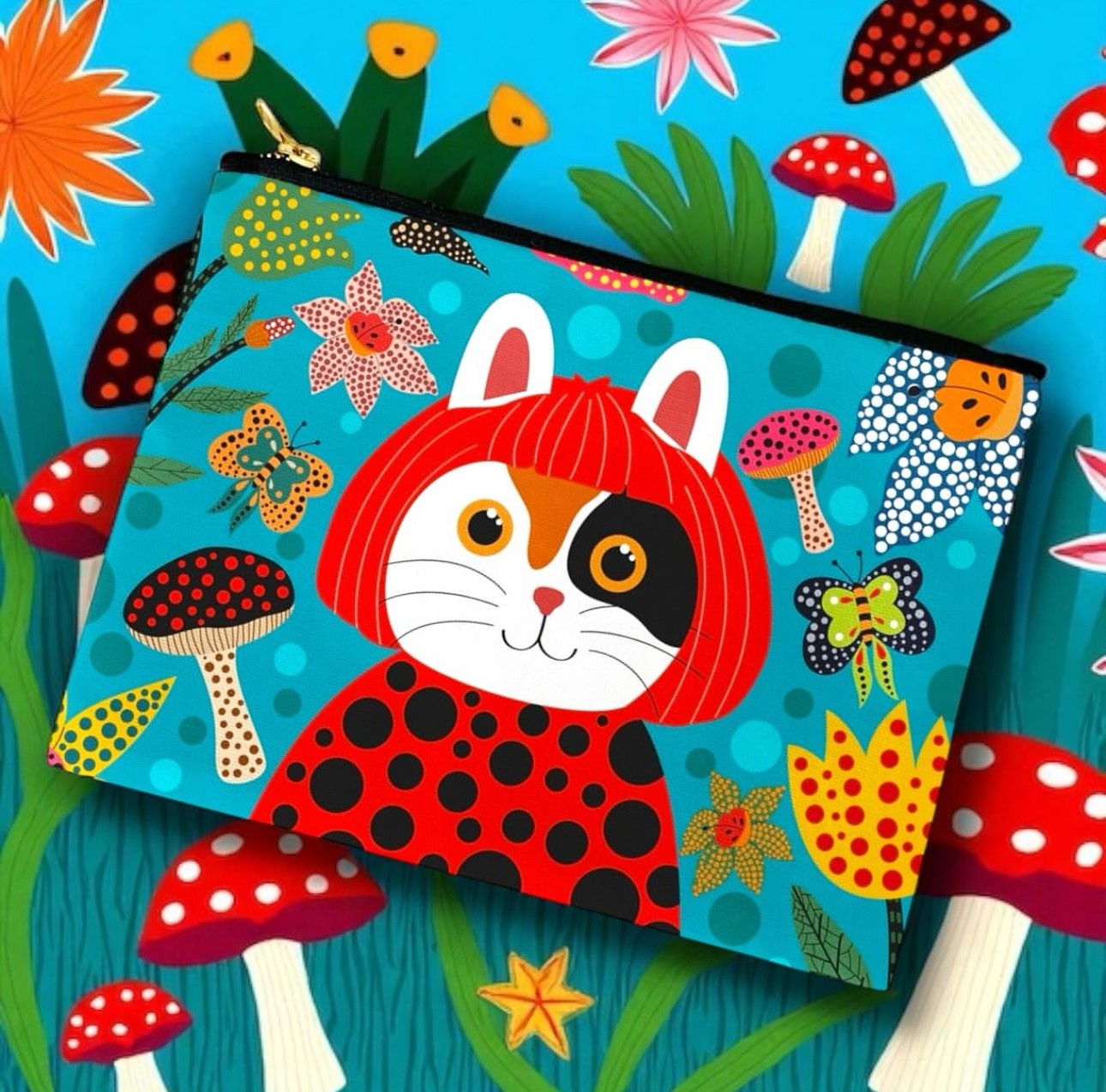 Size: 7”x 10” Brass Zipper Material: 100% Cotton Inside Lining: Polyester Handmade with Love Collection Printed: Both Sides